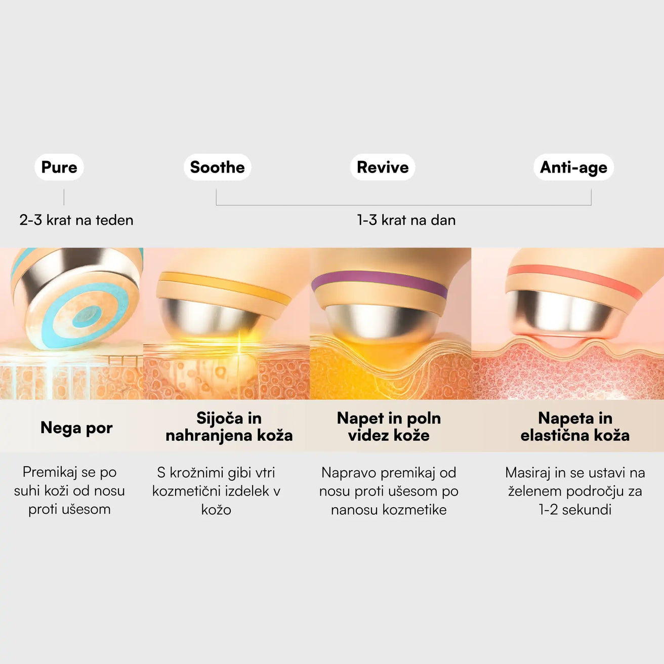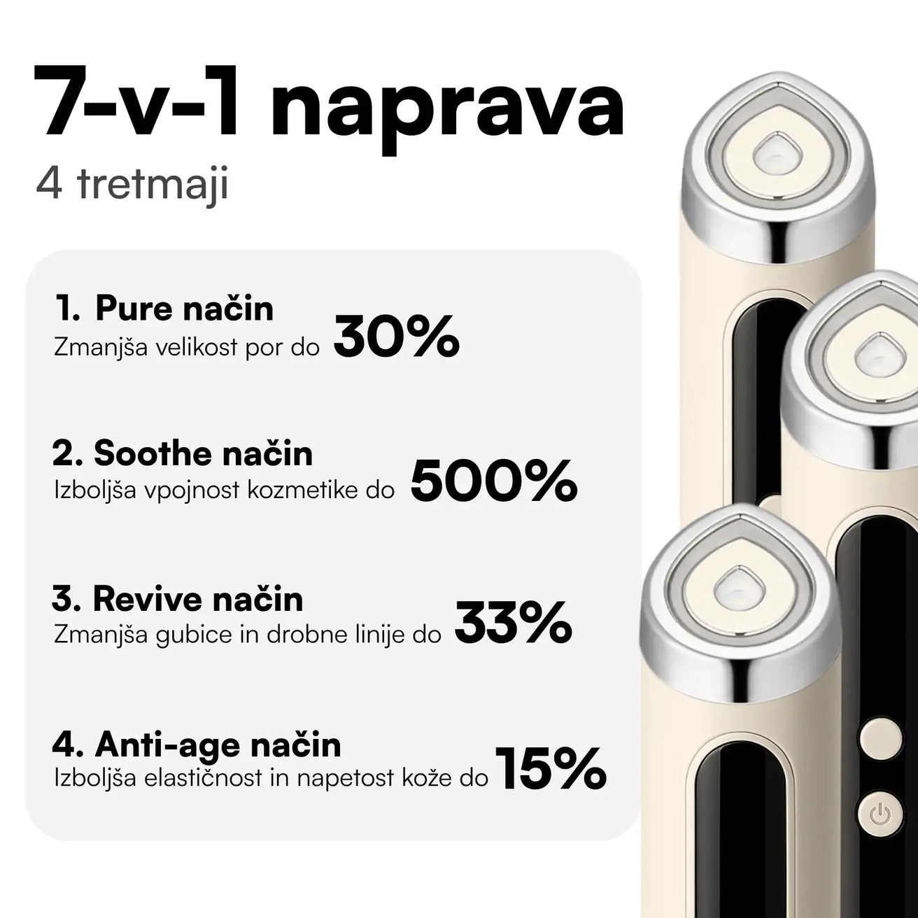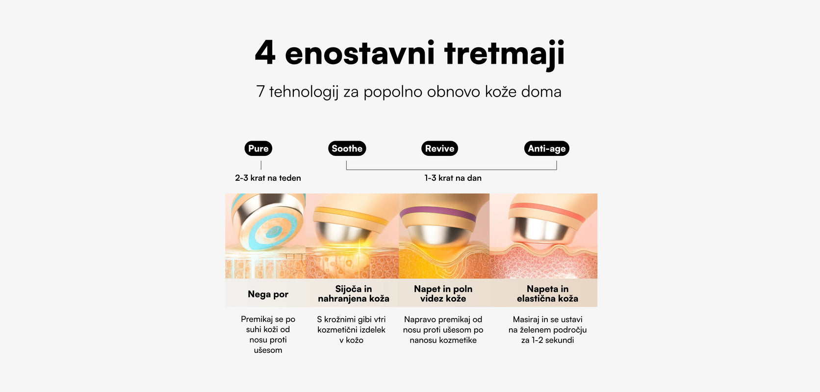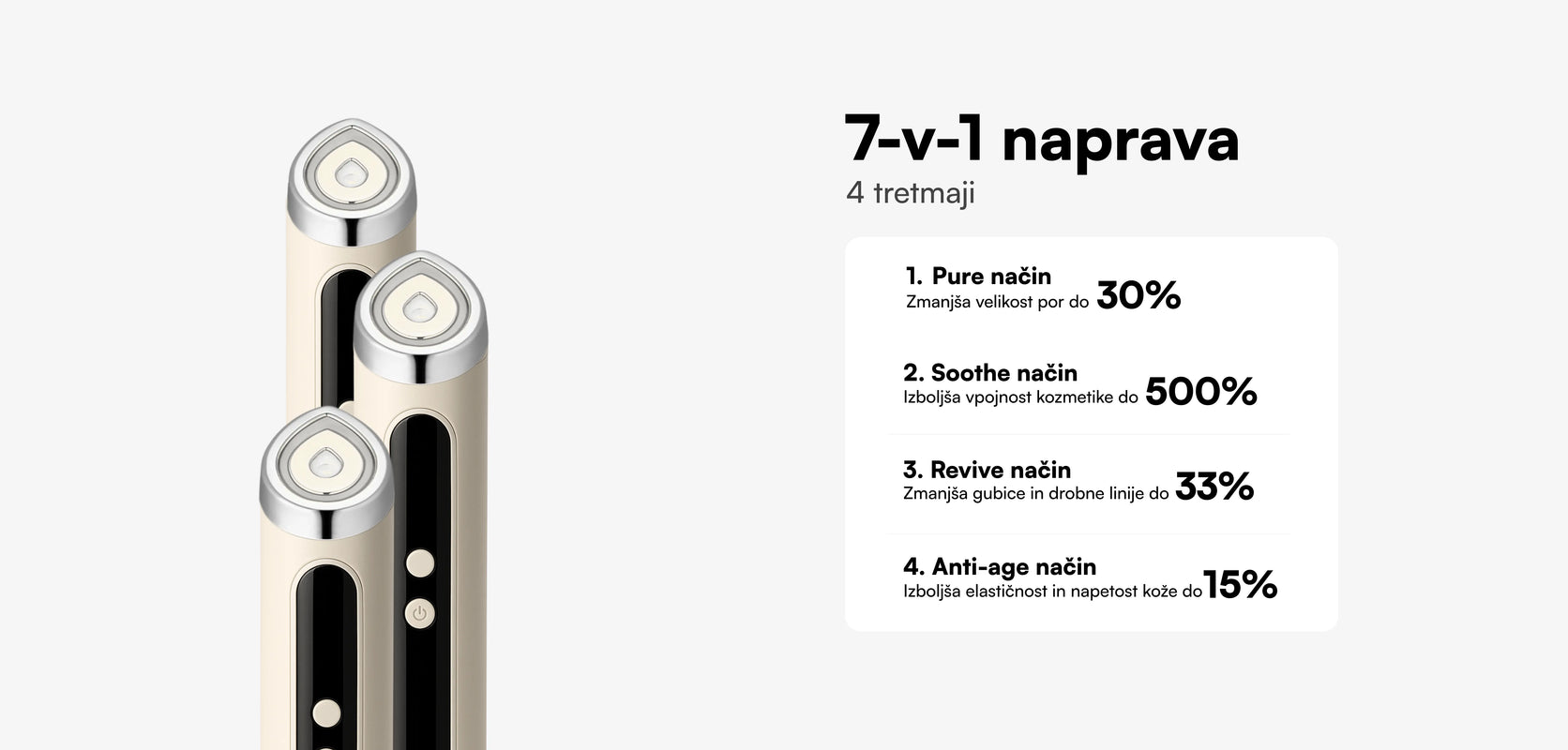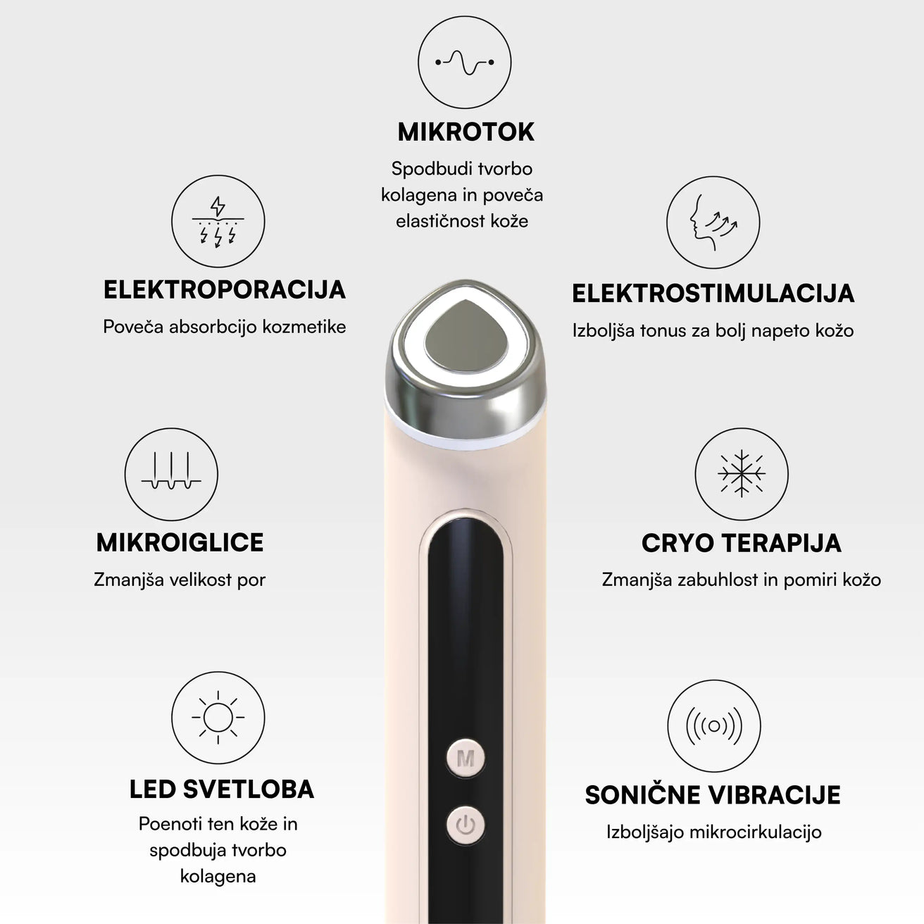 Mikro impulzi (električne iglice) ustvarjajo mikro kanale v koži za zmanjšanje por in večjo elastičnost kože.
