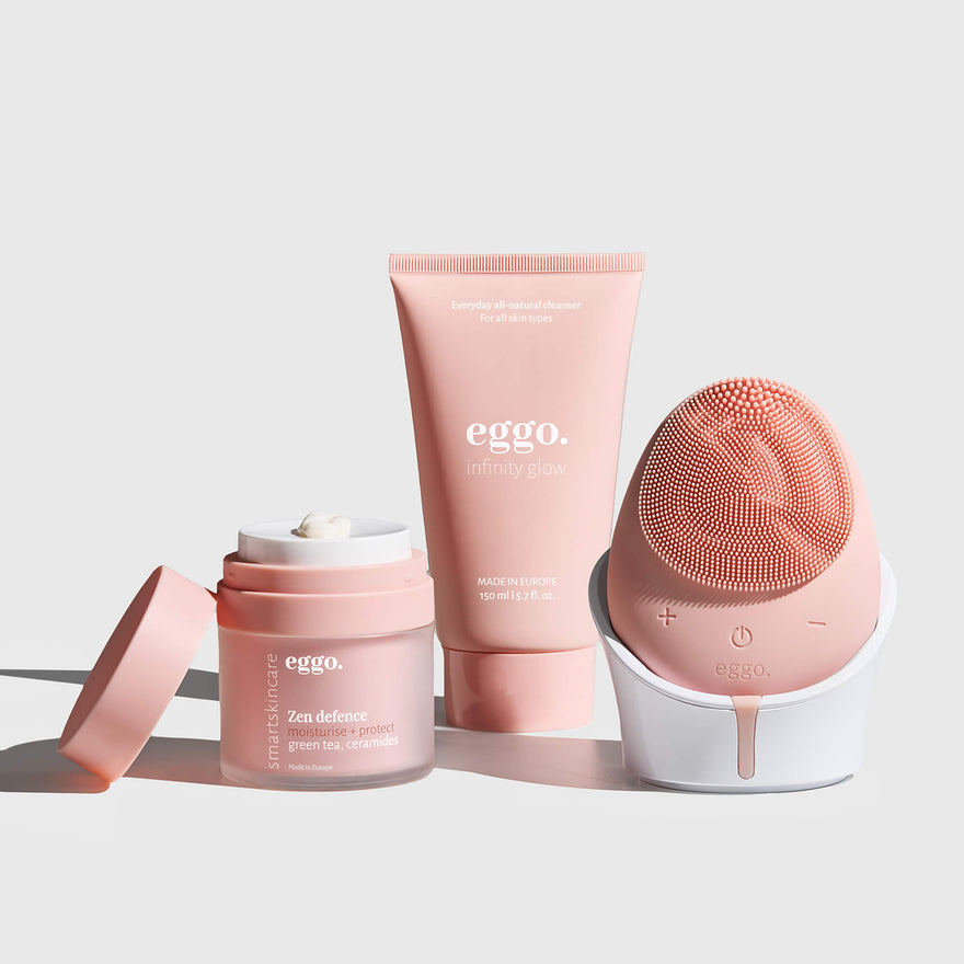 Prvi korak v dnevni rutini je čiščenje. Sonična naprava EGGO in 99,5 % naravni gel za čiščenje pomagata pri odstranjevanju vsakodnevnih nečistoč, odvečnega sebuma in ličil. Največje rezultate boš opazila z doslednim izvajanja tega prvega in hitrega koraka!